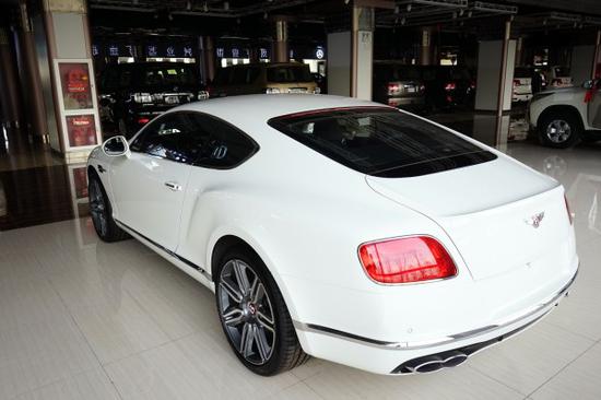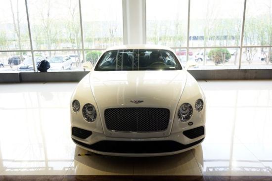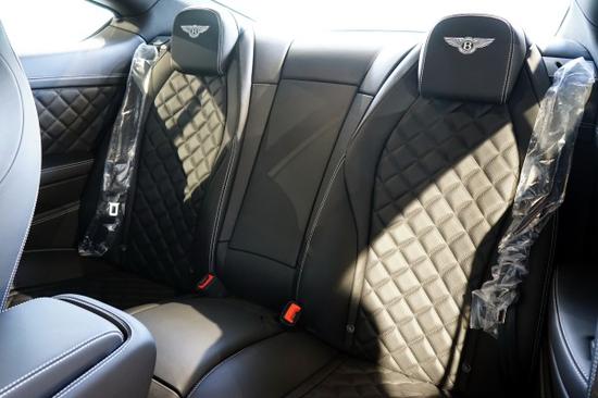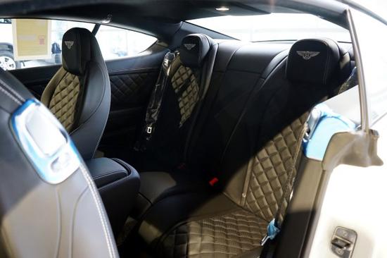 欧规 宾利欧陆GT  冰川白外观 黑色内饰 白色对比色刺绣。配置:穆勒包(前后座椅宾利刺绣,菱形座椅,菱形门把手,缩进式真皮车顶,滚花运动换挡杆,铝合金踏板,宝石燃油机油盖,配21寸7幅石墨钻石指向轮),黑色前后大灯,舒适包(前后排座椅通风按摩,双扶手,后排座椅舒适进入支撑,前排座椅坐垫延伸腿部),倒车影像,ACC主动巡航,座椅刺绣