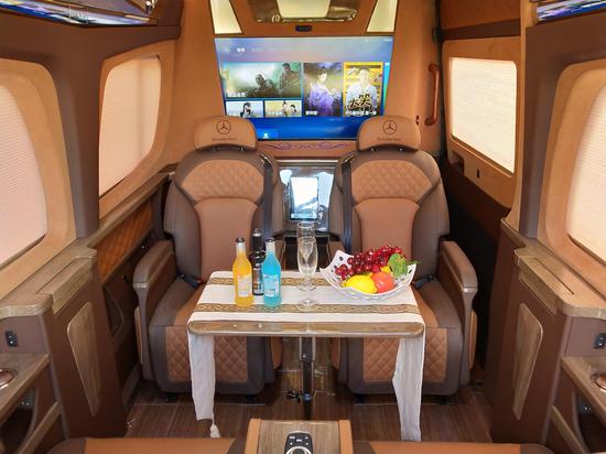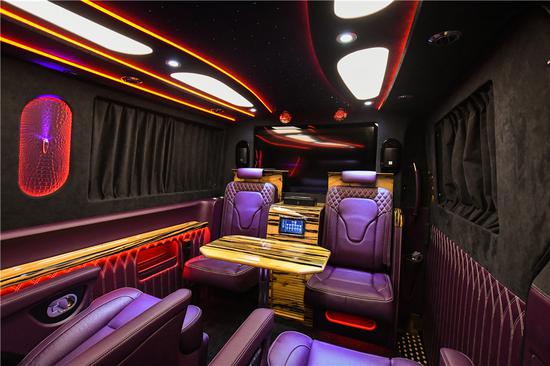 ●奔驰斯宾特7座曲面吧台版※奔驰S350发动机调校, 整车80%磨具化开发 ,多功能方向盘+氙气大灯
