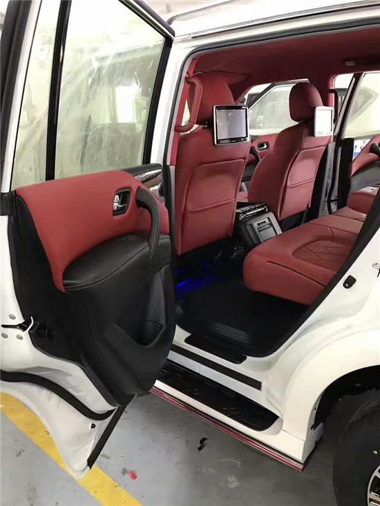 途乐Y62 18款 4.0 XE 配置:7座 18轮 底挂 2气囊 卤素大灯 LED尾灯 后雾灯电动车窗(四门一键升降)智能卡 一键启动电动折叠后视镜(黑色)智能四驱系统(陡坡缓降,多路况选择)LSE+后差速锁 上坡辅助 定速巡航 菱格纹丝绒座椅 双区自动空调 胎压监测 前后开启式中央扶手箱(带冰箱)多功能方向盘 中控真皮包边+门板真皮包裹。