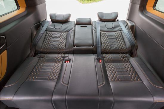 内饰布局:中排座椅采用全骨架型标准结构,12项调节的技术,带通风、按摩的舒适安全座椅; 后排采用可平躺式连体座椅;整个座椅采用10项标准工艺流程,骑士编制风格做成,舒适大气的巴博斯商务王子座驾