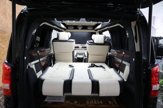 奔驰V250房车贵宾舱则用采用豪华皮革、麂皮绒包覆,前后舱采用电视+吧台的实用隔断,BOSE5.1殿堂级音响环绕系统+32寸高清升降电视+索尼蓝光DVD的经典车娱组合,给您舒适与娱乐相结合的享受。