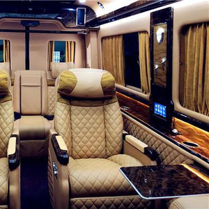 全进口的奔驰斯宾特分好几种,内饰的选择也有好几款,这次我们介绍的是一款高顶全进口款,由于是高顶款所以在车内就算是1.8米的人站直也不会感到丝毫压力,内饰为米白色,功能非常齐全,可以满足您对于商务旅行房车的各种需要 。车内可见的都是真皮 实木包裹,电子设备一应俱全。细节上的设计及其人性化。配备的是航空按摩座椅,顶部设计成星光灯,营造宁静安逸的氛围。座椅是真皮式软硬适中非常舒适、车厢玻璃通过特殊处理隔热且防紫外线。打开车门后,下部的门槛会自动弹出,直通车顶的巨大车门可以让后排尊贵的乘客不必弯腰低头就能从容进入后部车厢。