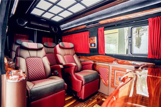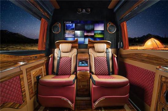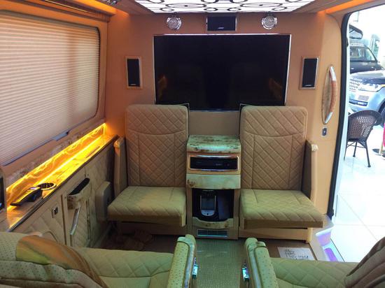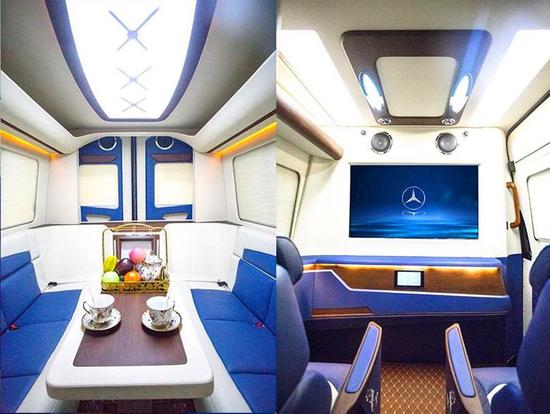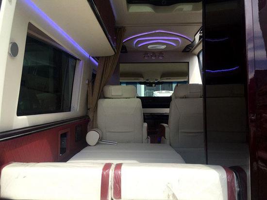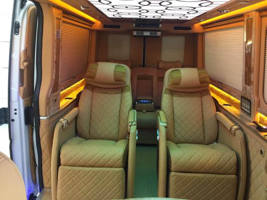 奔驰斯宾特设备配置再度升级,而内饰色彩搭配,紧贴时代,庄重优雅中暗含浪漫的奢华,是为个性化专属订制的高级商务房车。奔驰斯宾特亮点还有就是两个航空按摩座椅以及后排沙发座椅,就像自己家的沙发一样,坐上去非常舒适,前排座椅可以360度转过来,可以变化成一张床。房车主要讲究的是简洁大方,国内改装的强调复杂豪华,但不是复杂就是豪华,所谓的豪华就是简洁,装饰内饰选中材料,都是安全无毒,车内甲醛指标远远低于国家规定。
