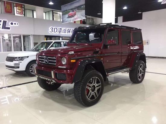 18款奔驰G500 4x4是一部纯粹的全地形越野车,粗犷的外观,标志性的三肋 镀铬格栅,大大的奔驰车标非常醒目。保险杠下部增加了镀铬下护板,车顶增加了可拆卸的碳纤维扰流板,扰流板两侧融入了LED灯光系统。新车轮距进行加宽,四轮独立悬挂,具有最高通过性的纯种地形越野车,硬朗笔直的车身线条完全是硬派越野的风格。平直的线条贯穿全身,后尾部线条 也是有棱有角,彰显出十足的越野味道。