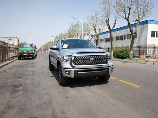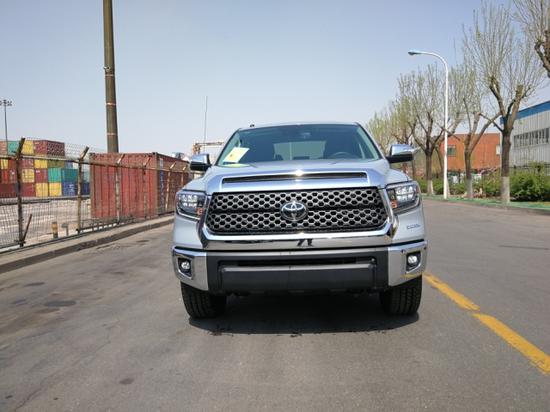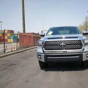 2018款丰田坦途是丰田车系中最大型号的皮卡,前半个车身的外形和丰田红杉几乎一摸一样,整体轮廓明显具有美国式汽车特有的风格。2018款丰田坦途TRD版皮卡的车头前脸造型上更加硬朗,粗壮的横幅格栅展现出极其坚实的力量感,宽大硬朗的车身,粗犷有力,凸显美国车的风范,前脸明显外张的挡泥板以及前突的坚固格栅尽现强悍风格。2018款丰田坦途5700这款皮卡之王操控优越,结合了美式的粗狂和日系的精致,硕大的前灯像是瞪大了的牛眼,狂野气息昭然若揭。