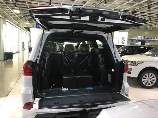 同时,在这里要指出的是,LX570不是全系标配7座,只有尊贵豪华版才是7座车型。虽然说这个第三排腿部空间还算可以,但还是那个问题,坐垫太高了,舒适性其实也是比较一般。在座椅配置上,LX570是比较厚道的,前后排该有的都有了,包括后排液晶屏,都是全系标配的。但美中不足的就是,第二排座椅的折叠放倒不是电动的。在后备箱空间上,LX570的尾门采用了两段式打开的设计,这个还是挺不错的。