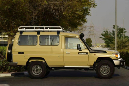 中东版2018款丰田兰德酷路泽LC78柴油还拥有35°的接近角、230mm的离地间隙以及700mm的涉水深度,这也使得LC78可以应付大多数的极端路况。同时,LC78的底盘也尽可能做得平整,比如消声器、拖车钩等位置不会过于靠下,否则它们就有可能成为越野时的薄弱环节。LC78搭载了一台1GR 4.5L V8D4D柴油发动机,即便这是一台有年头的发动机,但它仍然拥有231Ps马力,和360N·m峰值扭矩。同时,它搭载了一台5速手动变速箱,和机械分时四驱,这赋予了它更高的可靠性和对复杂路况的强大适应能力,当然这些能力的发挥也有赖于驾驶者的技术水平。可以说,LC78已经拥有了一台硬派越野车应该拥有的一切,对于一个深度越野爱好者来说,这就是一枚橙色品质的史诗级越野神器,几乎可以满足你的任何无理要求。对比一下如今越来越娘炮的各种SUV,你就会理解为什么还会有不少人对这台老车情有独钟了。