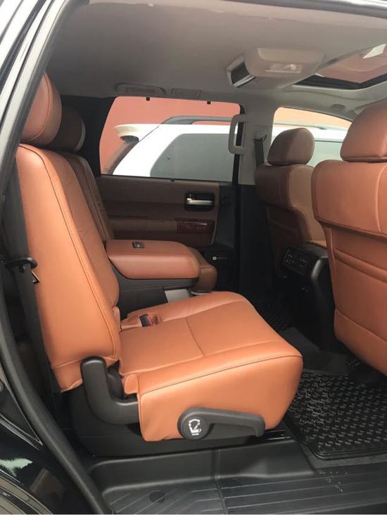 进口2018款丰田红杉5700顶配白金版保留了原来的车身侧面,但是后视镜和车门把手改为亮金属颜色,增加了几分时尚质感。大面积的梯形进气格栅,巨大的保险杠,大轮眉,让红杉的车头力量感呼之欲出。红杉外观很简洁大气,非常的低调,没有狂妄的感觉,但是追求的是内涵。