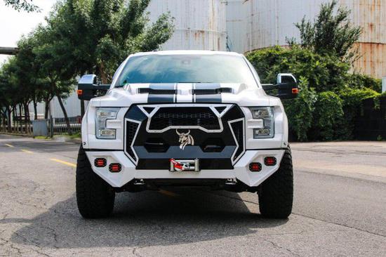 最新福特猛禽F150皮卡爆改版它的特立独行,不跟随与大多数车型的流线型车身,福特F150将近两米的高度让我真有种一览众山小的感觉,鱼鳃状的引擎盖散热孔并不是完全打通的,巨大的长方体蜂窝式格栅中间镶嵌着福特的大标,再加上全新设计的保险杠和发动机舱盖,使车头拥有了震撼的冲击感,前脸拥有着很大的改装潜力,其中加装辅助照明和绞盘成为大家首选的装备。