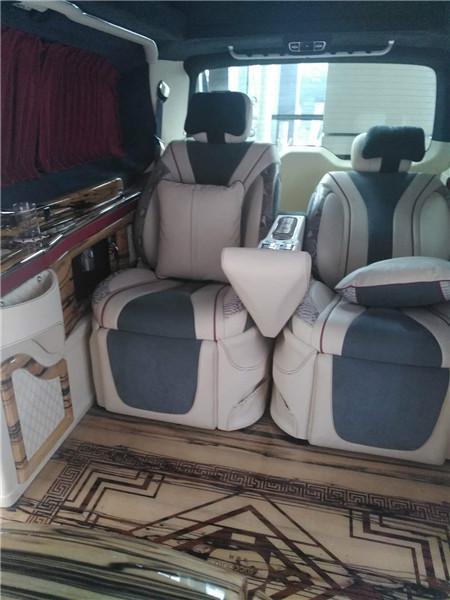 奔驰V260L改装商务车中央扶手配置了前、后四座杯托,带蓝光、加热功能,开启的时候格外有范儿,为了方便乘客随手置物,车门上隔出了多道储物空间,可分别归置手机、钱包、化妆品、烟盒、饮料等生活常备物品。高端优雅的扶手带有多想座椅调节功能,以及能够控制整车电子设备,简单方便!奔驰V260L商务车改装苹果电脑电视可升降以及包裹是吧台,第二排座椅为带电动、加热、按摩、通风功能的航空级首长席,可沿着地面上滑轨实现一键电动式前后滑动,对于这种智能化的乘坐体验,也是原厂车型笨拙的手动拖拽模式所望尘莫及的。