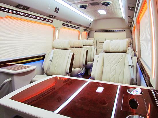 丰田考斯特15座改装商务车从内饰的布局上来说,座椅的设计可以根据我们自己的需要进行选择,座椅可以根据不同的材质进行分类,真皮座椅简单设计舒适感十足,可旋转的航空首长席可以方便我们在旅行中的游戏或者办公的需要。丰田考斯特15座还可以安装原装进口的埃尔法 (配置|询价)座椅,配备上通风加热以及电动脚托按摩装置更加可以让我们有一个舒适的旅行环境。