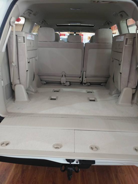 18款丰田霸道4000依旧保持了原有的七座丝绒座椅,前排座椅包裹感不错,坐感柔软舒适,后排座椅平直宽大,靠背角度可自由调节能有这样一款依旧坚持传统的实属难得,新车采用双区自动空调,后排不仅有出风口,还提供单独的控温及风力调节面板,对于后面要坐乘客的车来说十分必要,更加人性化。18款霸道4000在后备箱空间方面,一般情况下只要放倒第三排座椅就会有不错的载物空间,如果必要,放倒第二排座椅后就可以拥有装进两、三辆自行车的奢侈空间了。