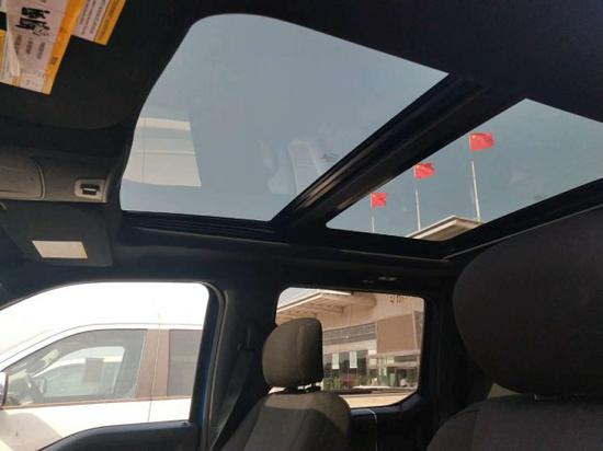 中央控制区搭配了触控式显示屏,其下方则是多媒体控制区及空调面板,采用旋钮+物理按键的组合。中控功能区域可分为三个小控制区,最上端为音响控制及导航控制,中间为收音机调节控制,最低端为空调及座椅加热控制。在内部空间的庞大基础上,福特也提供了非常具有舒适性与服务性的内饰配置。另外,新车还配备了一块大尺寸的全景天窗。