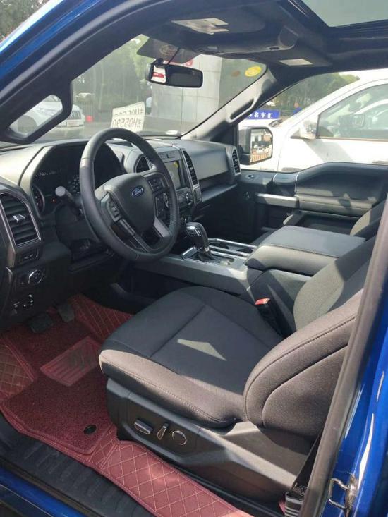 18款福特F150内饰奢华,配置富厚,同时兼具跑车的动力机能、越野车的全地形制霸本领和豪华轿车的乘坐恬静性,并且它的改装空间也很大。车内配备标准独特的皮革和布艺装饰的座椅,驾驶员侧的电动十向调节。这些座椅同时具备记忆功能。
