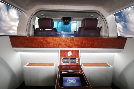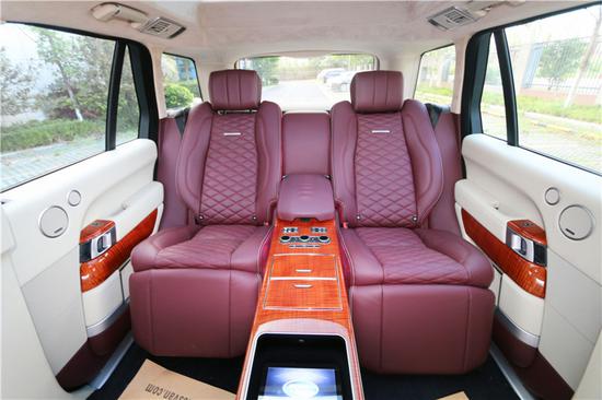 后排配备有鞋托,车内底板全部为豪华游艇木装饰。由于是4座的设计,所以说后备箱腾出了比较大的空间,说到底,加长路虎揽胜皇家一号,还是一个豪华商务越野车,最主要的功能设计都安排在了后排。