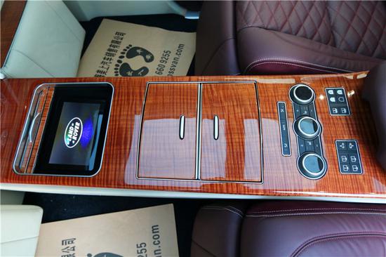 路虎揽胜皇家一号加长版前方座椅加热带按摩功能,车载冰箱一应俱全,由于车比较长,所以配备了前后对讲功能。车内配有一个吧台,带蓝光SONY牌DVD,索尼高清LED电视,以色列卫星天线,以及空气净化器,车内带氛围灯。