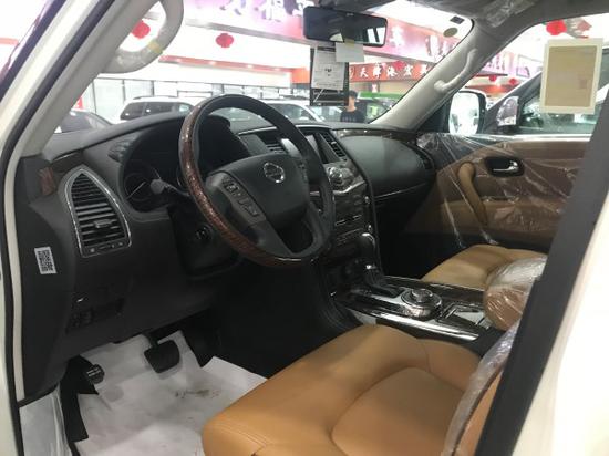 3、18款日产途乐Y62采用了豪华轿车惯用的四幅风向盘设计,粗细比较合手再加上真皮加实木的用料,手握感觉极佳。