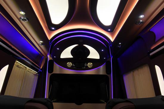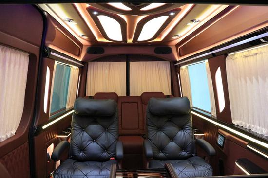 断断续续颇具美感 真皮包覆航空座椅舒适宽大有格调,可电动调节成床,劳累疲倦的时候坐着还是躺着,多种选择可缓解疲劳的不适感。且中控带有语音识别控制系统,十分有科技感且操作更便捷!每一次的旅行都需要一个舒适的场所,每一次商务接待,都需要一个大气的氛围,宜商宜居。全车BOSE音响,可升降电视机,40寸液晶电视下方是集成了5.1声道 BOSE 音响主机、高清蓝光DVD、后舱中央控制系统以及意大利英德尔indelB移动冰箱的功能型吧台