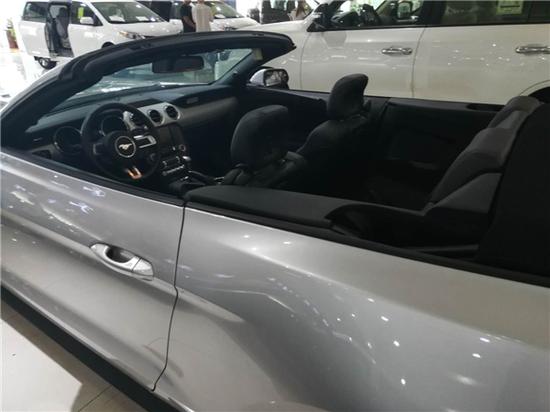 野马基本款的内饰是小屏幕,这款车加装大屏导航带倒影。