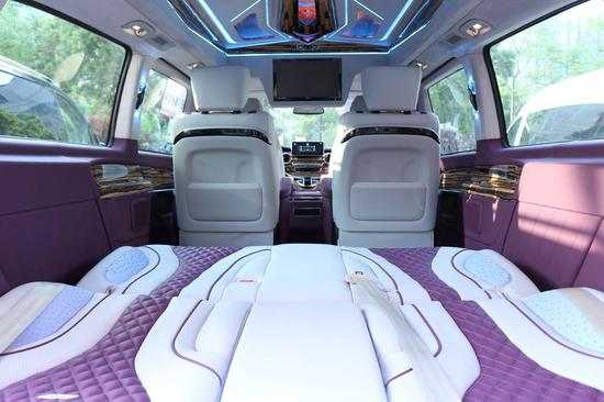 全车实木地板,原装立体环绕音响,进口航空座椅,座椅通风、加热、按摩,两侧电吸门,高顶艺术豪华灯饰,后排可放平成为一张双人床。除了高标准的视觉享受,更有完爆空乘贵宾舱的舒适体验,按摩、通风、加热、旋转八向舒适性调节,完美适用于各种身形的乘客消疲解乏,真正的坐享其程。