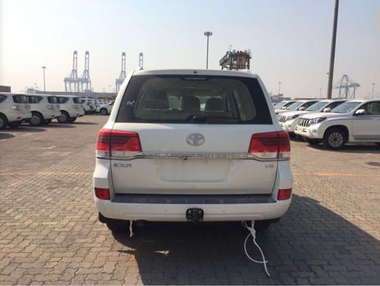 车型(天津报价)颜色售价价格变化备注18款中东版丰田酷路泽4600底挂备胎电仪电仪优惠现车配置:前小杠 18英寸铝轮 门边防撞条 氙灯LED 航踏 彩条 镀铬门把手 后四电眼 2气囊 天窗 中央差速锁 大屏 天窗 主驾电动座椅 桃木内饰 多功能方向盘 巡航 冰箱 电动折叠后视镜 迎宾灯 拖车钩 大灯清洗 蠕行系统 车身稳定系统 转向辅助(坦克掉头)胎压监测 。18款中东版丰田酷路泽4600原厂后挂备胎白/米 电仪优惠现车配置:(原厂后挂备胎)天窗、大屏、8气囊、400米摇起、智能卡、电眼、大灯清洗、儒行模式、18轮、织布座椅、冰箱、桃木真皮方向盘、雾灯、氙气大灯LED、6扬声器 、彩条、前2后2电眼、拖勾、迎宾灯、航空踏板、防撞条、电动折叠后视镜、镀铬门把手、镀铬后视镜、蠕行系统、车身稳定系统