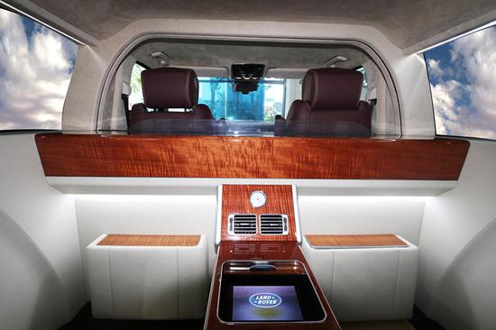 路虎皇家一号车顶等才用的是迈巴赫式的顶灯设计,带有全景天窗,