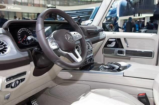 19款奔驰G500内饰设计则是首次应用了最新家族化“感性·纯粹”的设计语言,采用了和奔驰S级 (配置|询价)轿车如出一辙的双12.3英寸高清显示屏,而标志性的三把差速锁按键依旧布置在中控台的正中间。