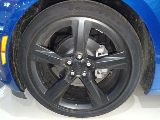 18款雪佛兰科迈罗在同级跑车市场中个头最大。科迈罗“大黄蜂”前轮搭配的是245/45 ZR20轮胎,后轮搭配的是275/40 ZR20轮胎,是倍耐力的PZERO系列轮胎。同时还配备20寸的铝合金轮毂、运动外观套件,使“大黄蜂”看起来更显运动张力,同时也保证了操控性能。