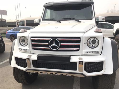 奔驰G500 4X42,是目前市面上最拉风的原厂SUV。 回头率这么高,得花多少钱呢 380万起步,并且价格还在持续上涨中。 普通版奔驰G500,指导价不超过180万,这款4X4二次方,为什么比普通版G500贵200万除了名字更长以外,它还比普通G500多了哪些东西呢 主要是六大项: 加宽加高的车身;22寸超大轮、Designo内饰、碳纤维套件、双避震系统,以及源自奔驰G63 6X6皮卡的门式车桥。 G63 6X6皮卡,是奔驰品牌有史以来最强悍的越野怪兽,6轮驱动,5把差速锁,加上来自“越野之王”乌尼莫克的门式车桥,可以说所向披靡。