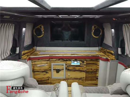 奔驰维特斯房车改装的内饰变化。一个大尺寸电动升降的LED液晶电视、进口环绕音质音响功放,有如家具客厅的娱乐设备搭配风格。7座格局,与后排乘员更为便捷,不论是在日常商务洽谈。在悠闲的生活旅途过程中,你可以充分体验到奔驰维特斯房车改装的过人之处,一切内饰一个人喜爱为基调,实用性为基础打造出良好的商务休闲环境。