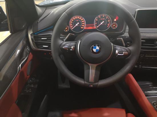 2018款宝马X6内饰部分在保留了X5绝大多数的设计元素外,还增添了些配置金属换挡拨片,手感相当不错,还有富有运动感的炭纤维内饰,氛围灯点缀了室内,这也是为了符合X6身份新增加的配置。M运动专属方向盘,方向盘的真皮覆盖件极为均匀,手感、质地都属上乘,此外,音响控制、巡航定速系统、电话系统都集成在方向盘上,使驾驶者可以方便的控制车辆。M运动专属液晶仪表盘,运动动感十足,无论是造型还是颜色搭配都是宝马一贯的风格。