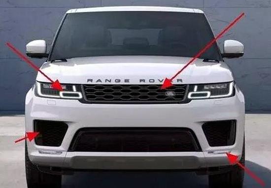 18新款路虎揽胜运动无需过多的语言,一眼就能看出来其变化,几乎可以说是改头换面,大灯、中网、进气格栅、雾灯、保险杠、内饰、中控几乎都有了变化,下面从一张图来了解18路虎揽运的前脸变化。