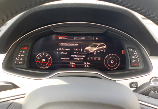 通透的全景天窗非常明亮,车内毫无任何的压抑感,自驾游时,全景天窗让您更好地欣赏自然风光,呼吸新鲜空气。奥迪Q7仪表台、中控台的布局都充满了奥迪特色,可以说没有让人耳目一新的感觉,但却是有很强烈的“奥迪色彩”。