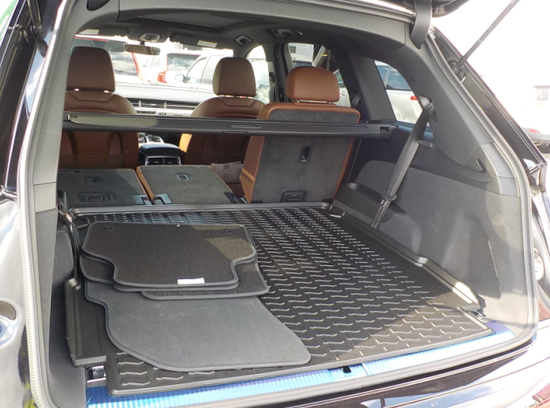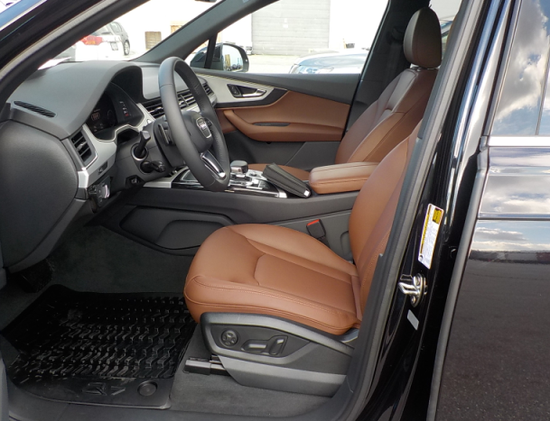 新款奥迪Q7的内饰延续了奥迪一贯的严谨细致,这应该是奥迪内饰的一个发展方向,在材质和做工上豪华精细。新奥迪Q7真皮包裹的四辐式方向盘造型饱满,角度以及深度可电动4向可调节,方向盘左侧的控制杆主要控制远近光以及转向灯,其它灯光控制通过驾驶员左侧的旋钮控制。考虑到SUV车型应有的空间表现,第二排座椅除了标准的4/6椅背分离之外,座椅还可进行前后滑移与椅背倾斜调整,加上简易的快速倾倒功能,仅需拨起座椅旁的释放杆,座椅即可向前折迭,并与第三排座椅、尾厢形成平坦底板。