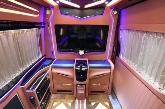 非凡的抓力,高格调的细节,新款下线奔驰斯宾特平顶7座商务房车尊贵风范、与生俱来,专为成功人士奢华订制;整车最大亮点:1、采用43寸超大高清曲面电视,事业更开阔,用户体验更自然,超享影院级试听感受;2、高档电动窗帘,采用意大利品牌Alcantara人造面料(众多顶级豪车保时捷、兰博基尼均配备),具有优秀的散热保温性、永不褪色且耐磨耐刮擦、环保透气,并将减重做到极致,在高端汽车上被广泛使用;3、顶棚中部鹿皮绒软包,采用欧洲主机厂Pasubio提供的顶级牛皮(Pasubio牛皮被广泛使用在宾利、马萨拉蒂等奢侈轿跑车中);4、日本进口等离子空气净化器:纯净活氧,节能更环保。