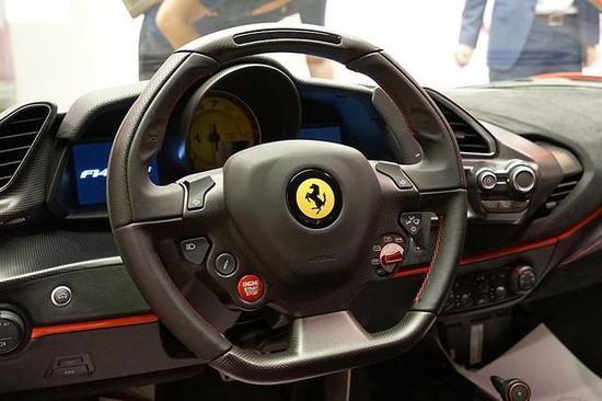 进入车内,浓郁的战斗气息扑面而来,除了法拉利经典的三角形中控、圆形仪表、赛车方向盘外,金属地板、单薄坚硬的桶形座椅、大量碳纤,都让人很是亢奋。同时,新车的内饰采用了大面积Alcantara材质,营造出一流的质感。当然,消费者也将可以通过选装的方式选择自己喜爱的内饰搭配。