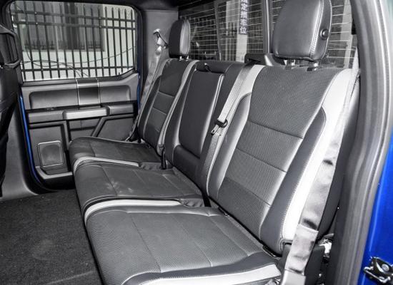 福特猛禽F150内饰采用独特的中控台和门饰板面漆和真皮包裹的方向盘。中控台部分辅以银色饰板装饰,六指针仪表盘的设计有些后工业时代的复古风格。采用带电冷热功能的可记忆式皮革座椅,头枕四向可调,搭配铝饰条和黑色钢琴烤漆内饰。可电动升降的后窗带隔板和电热除霜功能。