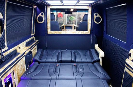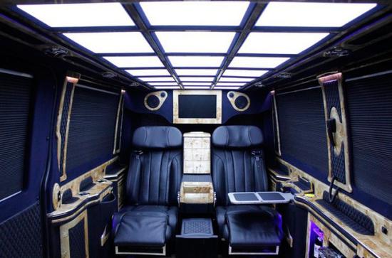 这款奔驰7+2斯宾特将商务房车将低调的奢华演绎得淋漓尽致,全面展示了改装市场在高端商务MPV方面的技术储备和设计潜力,同时也拓宽了人们对于豪华商务车的想象空间,重新诠释了高端商务车未来发展的无线可能。蓝牌3.5排量,带2张航空按摩座椅、3人座联排沙发座椅和2张电动伸缩秘书椅,冰箱、咖啡机、BOSE音响系统、前后舱对讲机、4G无线WIFI、40寸电动隔断升降液晶屏(带卫星电视)和吧台隐藏式小桌板;面对客户的礼赞和市场的信赖,奔驰斯宾特7+2不负厚望,以经典、尊贵的形象迎合中国高端市场需求,更好地满足领袖级用户对豪华MPV的需要。