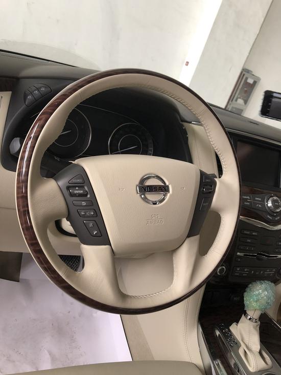 2018款途乐Y62钛金版 内饰整体风格豪华,真皮座椅、DVD娱乐、上下坡以及胎压监测等装备也都悉数出现。新款日产途乐内饰材质也更加的考究,使用了皮革,铝以及木纹样条作为点缀。采用了豪华轿车惯用的四幅风向盘设计,粗细比较合手再加上真皮加实木的用料,手握感觉极佳。另外方向盘功能强大,集成了音响、空调控制及蓝牙车载免提系统,使驾驶者在行车中更为安全,做到手不离方向盘。同时方向盘加热功能,令驾驶者双手在寒冷的冬季也能得到最佳的呵护。