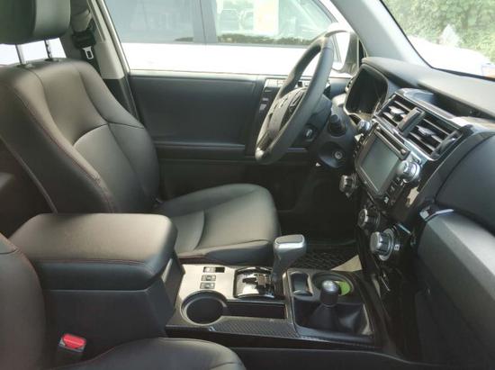 超霸4.0发动机,87L油箱,电动转向,多功能方向盘,蓝牙,空调,6.1英寸显示屏,蓝牙,8扬声器,导航,前排加热座椅,8向调节电动驾驶座,4向调节电动前排乘客座,电动车窗,私密玻璃,电动门锁,倒车影像,ECO驾驶监控,自动防炫目后视镜,化妆镜带照明,真皮包裹方向盘,行李舱盖,脚垫,巡航定速,前后杯托,前排气囊,前排侧气囊,前排膝盖气囊,卷帘气囊,胎压警报,SST,VSC,ABS,TRAC,EBD,BA.HAC,DAC, P265/70R17,17英寸轮毂,轮毂锁,电动天窗,脚踏板,拖钩,尾翼,电动加热后视镜,后窗雨刮,雾灯,5速自动挡,全地形ABS,后差速锁,四驱选择,全地形选择,4轮低速巡航,引擎盖散热口,黑色座椅红色缝线,头枕TRD标,KDSS,5座,金属内饰,OFFORAD铝合金轮毂