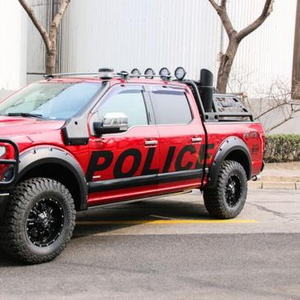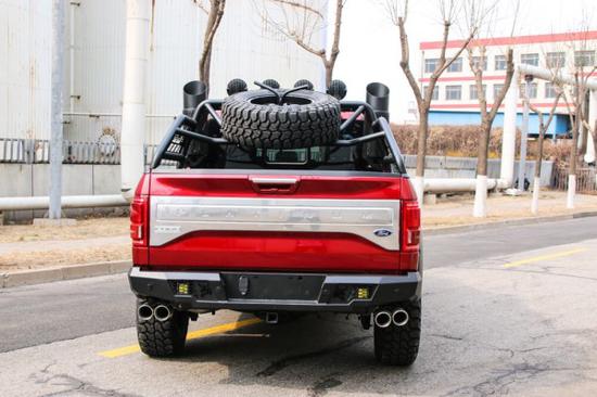 福特F150白金爆改版整体桥悬挂保证了车辆的钢性和承载能力,而减震器则成为悬挂的点睛之笔,变得可以在非铺装路面上如履平地,车头给人一种很凌厉的气势,车头部分采用大量的软质塑料装饰,一方面减低重量,福特F150皮卡对于这类型的野地车,沙石或杂物的伤害在所难免,采用塑料装饰可以减低车辆损耗成本。