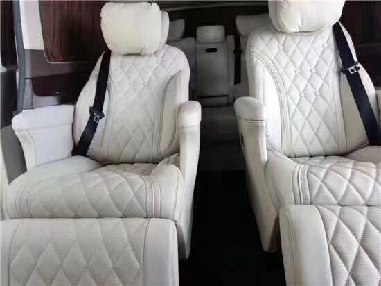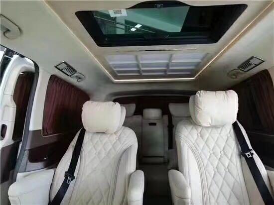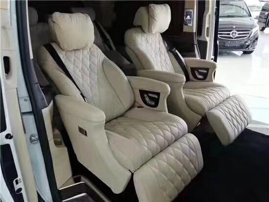 奔驰V250迈巴赫S680乘客舱第二排多功能座椅,可旋转,并带有脚托功能,舒适乘坐,附有加热、通风、电动调节、腿托、按摩、记忆、电动头枕、电动靠背等功能,座椅支持180度旋转。后舱为三连沙发座椅,但是V260L 这辆“避暑”车在一键放平成床之后,就可成为你的旅行床,燥热、无聊之时,与家人朋友郊外旅行,在这张床中休息、畅聊都是您避暑的好方法。