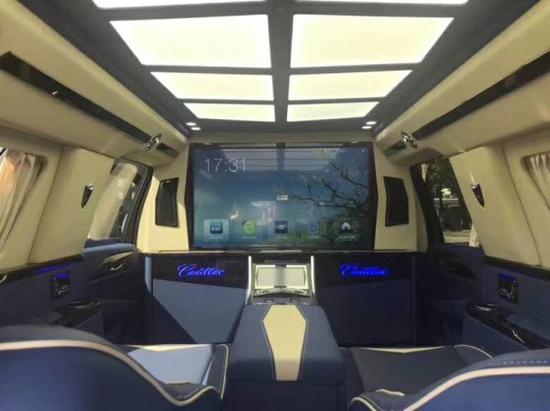 18款凯迪拉克总统一号将策版躲藏六座商务车内饰部分:舱内距离:可升降分隔屏,32寸超薄液晶电视 音响设备:BOSS盘绕音响,DVD 舱内灯饰:空气灯 LED灯饰,迈巴赫棚顶灯 舱内吧台:酒柜 咖啡机舱内桌板:电动躲藏式弹性桌板 地板原料:柚木地板 舱内天窗:全景敞开式大天窗。