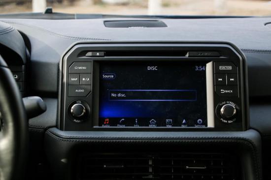 最新款日产战神GTR豪华版方向盘换上了高质感的Nappa真皮新三幅式方向盘,并将换档拨片改为固定式战神GTR还换上更舒适重量又轻的电动座椅,并在中控台换上比以往还要大的8英寸影音娱乐触控屏幕,整合了原先有27颗繁杂的功能按钮,同时拥有导航和语音控制系统,让实体按纽减少至11颗,方向盘右侧的控制面板进行了重新布局,大屏上方增加了光盘插口,屏幕下方增加了出风口,保留了经典的飞机拨片。