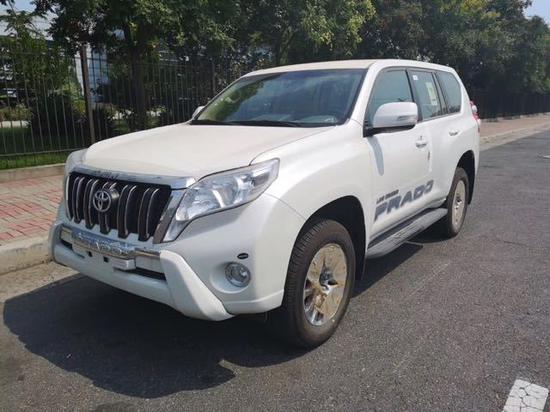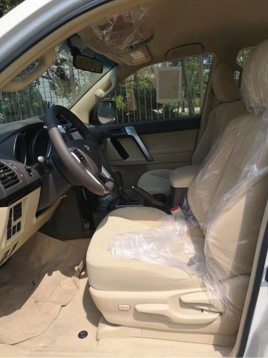 17款柴油霸道3000 TXL外挂 现车 白/米 55.5万 配置:国五排放,环保公开,18铝轮 大屏 智能卡 一键启动 冰箱 中央差速锁 定速 电动折叠后视镜 卤素灯 雾灯 前小杠 后雷达 黑踏 后挂备胎 尾翼 2气囊 7座丝绒座椅 3区空调。