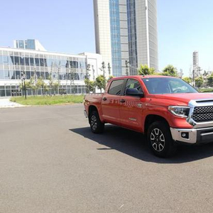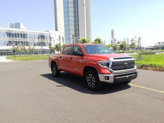 2018款丰田坦途是丰田车系中最大型号的皮卡,前半个车身的外形和丰田红杉几乎一摸一样,整体轮廓明显具有美国式汽车特有的风格。2018款丰田坦途TRD版皮卡的车头前脸造型上更加硬朗,粗壮的横幅格栅展现出极其坚实的力量感,宽大硬朗的车身,粗犷有力,凸显美国车的风范,前脸明显外张的挡泥板以及前突的坚固格栅尽现强悍风格。2018款丰田坦途5700这款皮卡之王操控优越,结合了美式的粗狂和日系的精致,硕大的前灯像是瞪大了的牛眼,狂野气息昭然若揭。