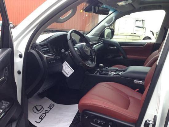 2018款雷克萨斯LX (配置|询价)570 白/红 ; 颜色齐全 。本家车源 诚信报价! 参数配置: 长5150mm,宽1980mm,高1910mm,轴距2850mm,轮距1650mm,最小转弯半径(车轮)5.9m,最大总质量3400kg,整备质量2750kg,最小离地间隙230mm,接近角(主动悬架高度控制为正常模式时)19.0°,离去角(主动悬架高度控制为正常模式时)20.0°,油箱容积93+45(副油箱),发动机型号3UR-FE,V型8缸顶置双凸轮轴32气门带双VVT-i*,内径/冲程94.0/102.0mm,压缩比10.2:1,最大功率(千瓦/每分钟转数) 270/5,600,最大扭矩(牛·米/每分钟转数)    530/3,200,最高时速(公里/小时) 220,驱动系统:全时四驱带Torsen®LSD*,变速系统:8速手自一体电子控制自动变速系统S-ECT,前悬架:独立双叉式悬架带横向稳定杆,后悬架:4连杆机构式悬架带横向稳定杆,悬架控制:四轮主动悬架高度控制AHC及适应式可调悬架系统AVS,驾驶辅助系统:5速自动爬行控制系统带越野转向辅助功能,转向系统:液压助力带可变齿比转向系统VGRS。 配置: 21轮,电动天窗,LED大灯,LED雾灯,加热方向盘,电动调节外观后视镜(可加热,电动折叠,防眩光,倒车自动角度调节,记忆功能,摄像头),后隐私玻璃,前雨量感应雨刷,风挡玻璃除冰除雾功能,铝制行李架,方便进入系统(驾驶室和方向盘自动回应),电子仪表盘,高级真皮座椅,实木内饰,10项电动可调节驾驶员座椅带记忆,8项乘客座椅电动可调节,前排及第二排座椅通风加热,冰箱,巡航,智能卡,四驱空调,高级音响,后娱,蓝牙,360环影,全彩抬显,迎宾灯,脚踏照明,多地形反馈,盲点,车道偏离提醒,电眼,雷达测距。