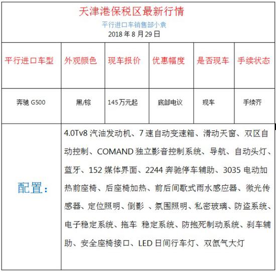 18奔驰G500搭载的4.0L双增压V8发动力,搭配7挡手自一体变速箱,最大马力422马力,最大扭矩610N/m,车身尺寸4764*1867*1954,前后轴距为2850mm,最小离地间隙205mm,油箱容积96L,百公里油耗市区约14.5L,高速约11L。强劲的楔形特征以及醒目的奔驰车标使其在静止不动的时候都能让人感受到他的奔放气息。不过这些并不意味着奔驰G500的公路性能的丧失,推动近三吨重车身的时候,依然有0-100km/h加速10.2秒的好成绩。