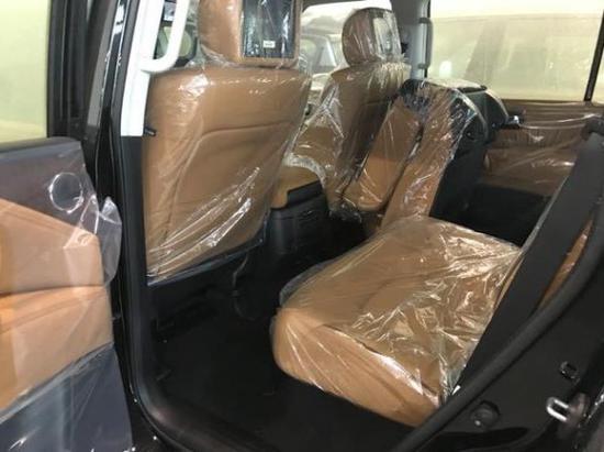 2018款日产尼桑途乐Y62内饰不像外观那样霸气,稍作收敛,仪表盘采用传统的设计,中间的液晶屏幕可以显示常用的行车信息。改装真皮座椅,提升舒适性和豪华性,铝以及木纹样条作为点缀,以浅色调为主,营造出了轻松惬意的驾驶环境。方向盘采用了豪华轿车惯用的四幅方向盘,手感极佳。