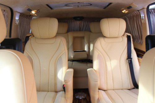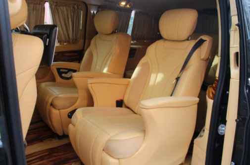 奔驰进口V250动力:2018款奔驰V250大扭矩440N·m。与之匹配的是7G-TRONIC PLUS自动变速箱。值得一提的是新车采用了全时四驱系统,综合油耗仅为6.7L/km的,在BlueTEC技术的加持下,V250 BlueTEC 4MATIC二氧化碳排放量为177g/km。 进入后舱,立刻就会被它的豪华绚丽而征服,驾驶舱与后舱是分隔设计的,形成两个独立的空间。中间由一台超大液晶升降电视(32寸)及柚木多功能吧台及柏林之声音响组成,整车环保真皮包裹,金网花地板铺设,豪华感无处不在。后舱前为两个独立航空座椅,全部采用真皮制作,豪华木饰装点,装有按摩加热通风功能。